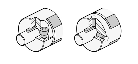 Die Befestigung mit Gewindestiften erfolgt radial und form- bzw. kraftschlüssig auf der Wellenoberfläche.