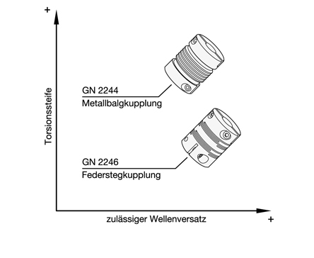 Je geringer die Kompression einer Wellenkupplung ist, desto geringer fällt die Rückstellkraft sowie die axial wirkende Kraft aus. Dies ist bei der Dimensionierung der Wellenkupplung unbedingt zu beachten.