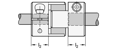 Zur korrekten Befestigung der Kupplungsnaben muss die Welle gemäß der empfohlenen Welleneinstecktiefe l2 montiert werden. Die Welleneinstecktiefe l2 ist im Normblatt der jeweiligen Wellenkupplung angegeben.