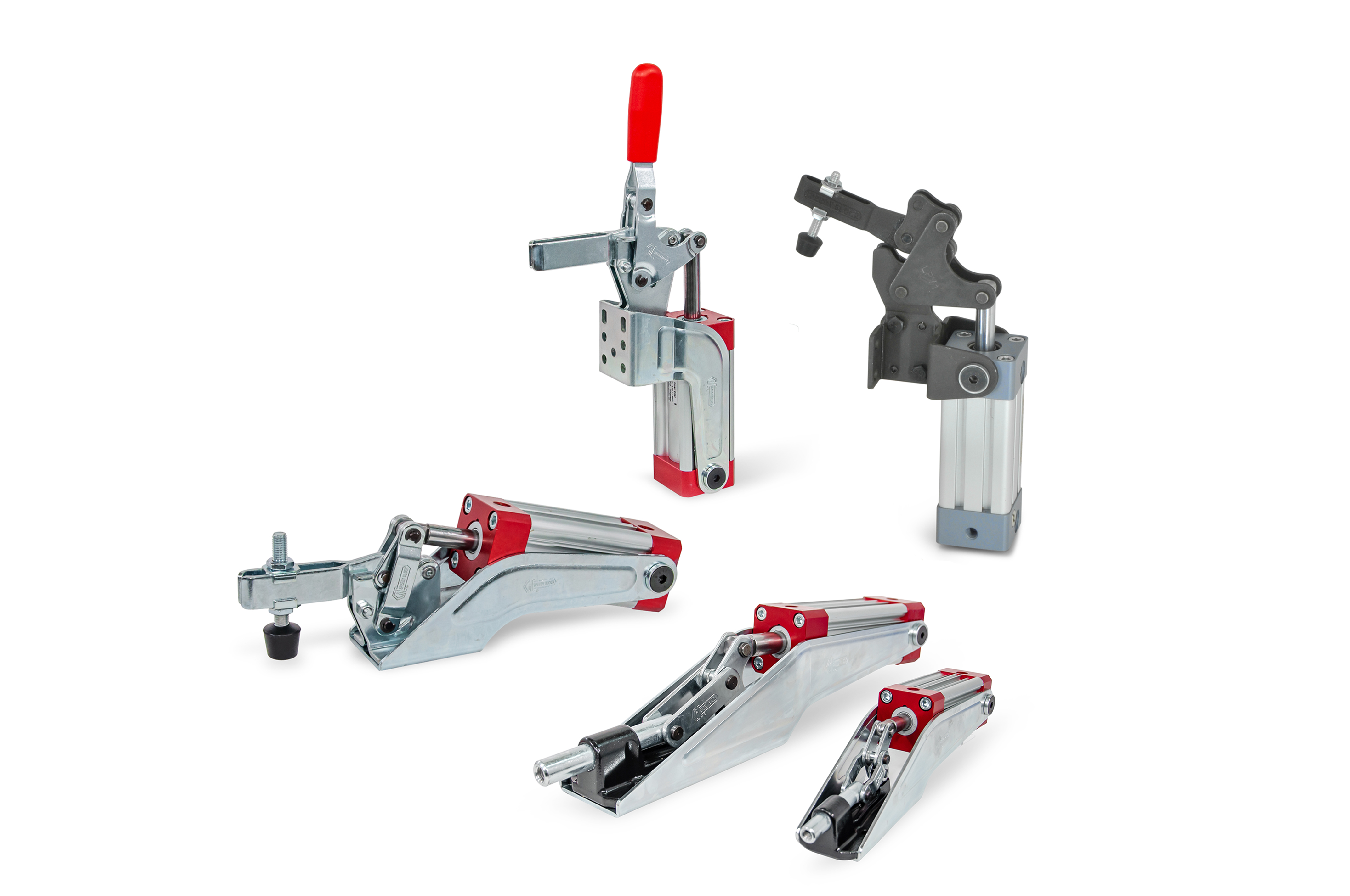 Pneumatische Schnellspanner entsprechen in Aufbau und Abmessungen handbetätigten Schnellspannern. Sie funktionieren nach dem Kniehebelprinzip, werden jedoch nicht von Hand sondern rein pneumatisch betrieben.