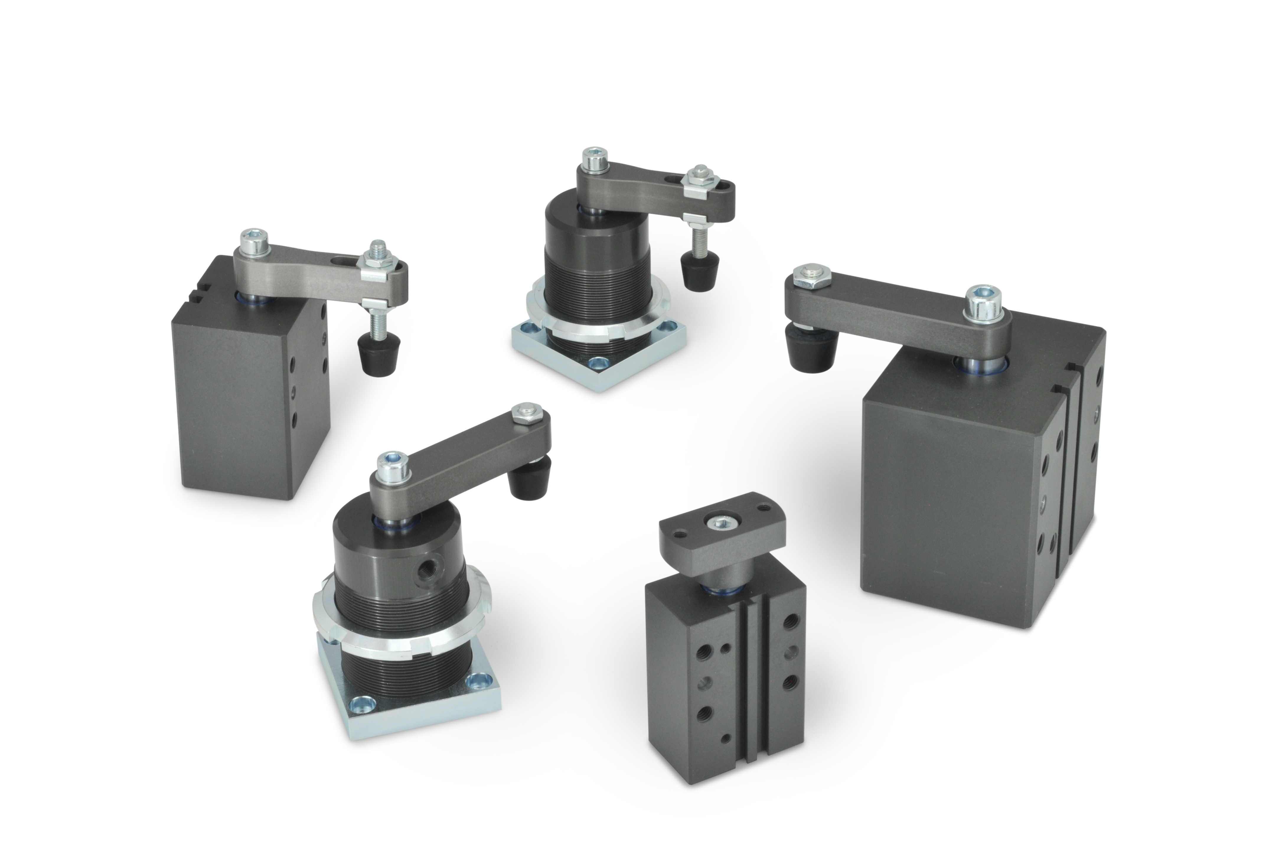 Schwenkspanner unterscheiden sich von anderen Spannern durch ihren kinematischen Ablauf. Bei einem Spannvorgang erfolgt zuerst eine 90°-Schwenk-Hub-Bewegung nach unten, anschliessend folgt der lineare Spannhub zur Werkstückspannung.