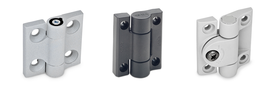 Scharniere mit einstellbarer Friktion lagern und befestigen Türen und Klappen schwenkbar an Anlagen und Gehäusen. Die auch als Reibscharniere bekannten Normelemente verfügen dank der speziell ausgeprägten Scharnierachse über ein einstellbares Bremsmoment, welches das Scharnier über den gesamten Schwenkbereich gleichmässig schwergängig in der Beweglichkeit hemmt und so einer selbsttätigen Bewegung entgegengewirkt.