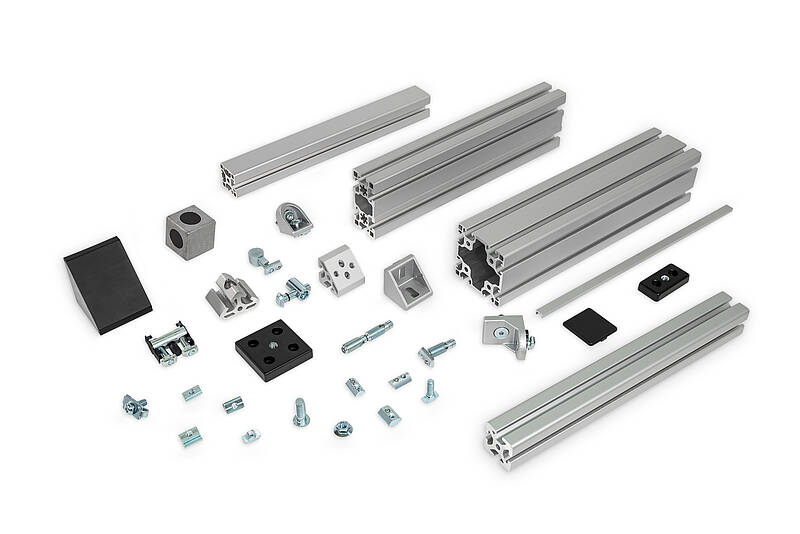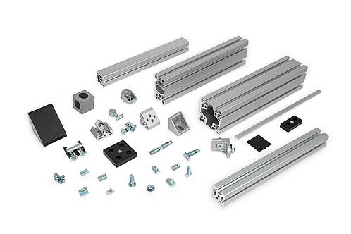 Schon lange hat Hanser viele wichtige Elemente für die individuelle Nutzung von Profilsystemen im Programm. Dazu zählen unterschiedliche Winkel, Nutensteine sowie alles andere, was direkt und indirekt an Profil-Baukästen verbaut wird: Bügelgriffe, Scharniere, Flächenhalter und Stellfüsse, um nur ein paar Beispiele zu nennen.