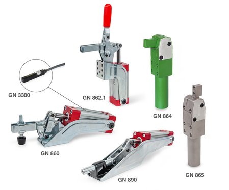 The new pneumatic clamps are available in the tried-and-tested versions for horizontal (GN 860) and vertical (GN 862) installation. With GN 862.1, Hanser also has a version that additionally permits manual operation.