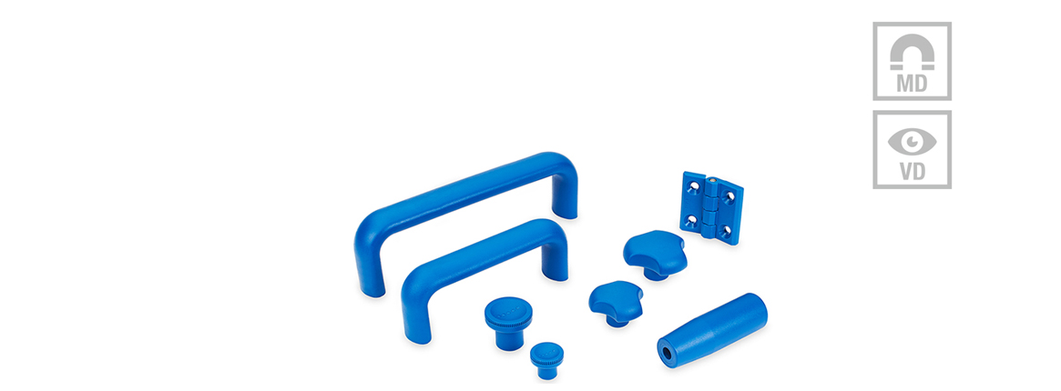 L’ensemble des pièces standard, ou même des fragments, qui se retrouvent par inadvertance dans l'industrie agro-alimentaire, peuvent ainsi être détectés facilement et de manière sûre. De plus, la différence de couleur permet de détecter plus facilement les impuretés et les résidus alimentaires sur les pièces standard et les pièces d’actionnement.