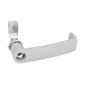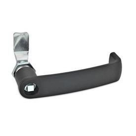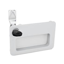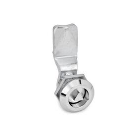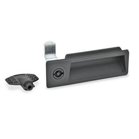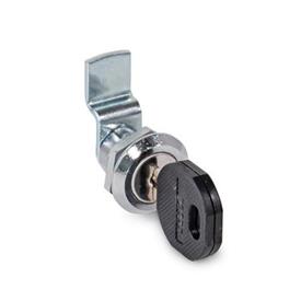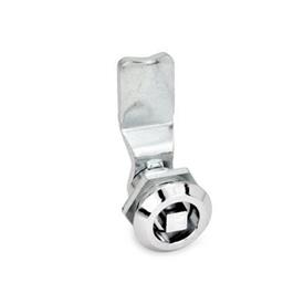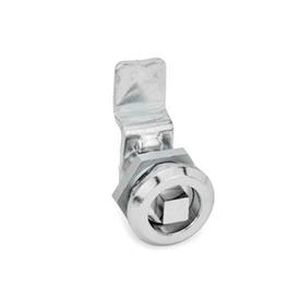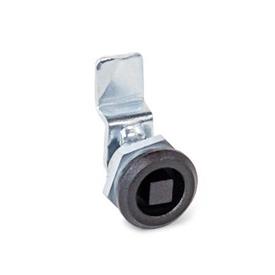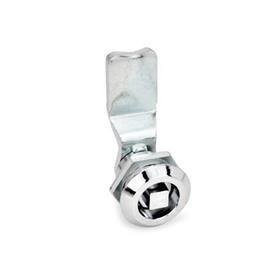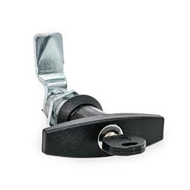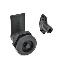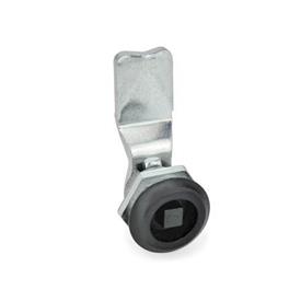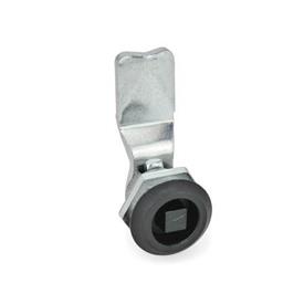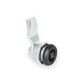 Loquets permettant de verrouiller portes et couvercles grâce à une rotation de 90° de l'élément d'actionnement qui positionne l'élément de fermeture derrière le cadre. Les bords obliques de l'élément de fermeture facilitent le verrouillage.