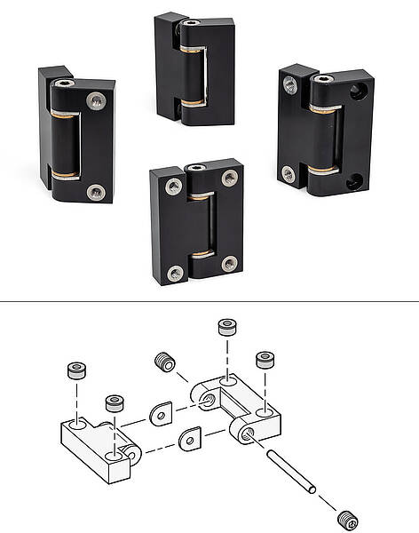 I quattro tipi di alette sono compatibili fra loro e si possono utilizzare insieme in qualsiasi combinazione. Come per qualsiasi altro articolo Hanser, anche le cerniere si possono ordinare separatamente indicando i codici articolo specifici. Questa flessibilità consente di coprire un'ampia gamma di applicazioni. In generale, Hanser fornisce le cerniere di precisione preassemblate in base alla configurazione specifica del cliente.