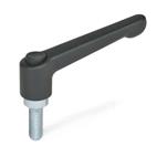 Maniglie a ripresa GN 300: Lega di zinco pressofusa, inserto in acciaio, con filettatura esterna
