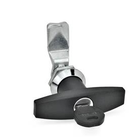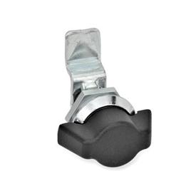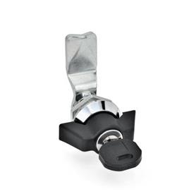 Le chiusure a camma, spesso chiamate chiusure a un quarto di giro, chiudono porte e sportelli con una rotazione di 90° dell’attuatore che sposta una linguetta di chiusura dietro il telaio. Gli smussi della linguetta semplificano la chiusura.