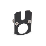 I supporti torsiometrici sono realizzati in alluminio anodizzato nero e vengono avvitati sull'attuatore lineare utilizzando il materiale di fissaggio in dotazione. Grazie alla scanalatura aperta su un lato, il torsiometrico impedisce la rotazione dell'indicatore di posizione o della piastra di serraggio.