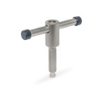 Per il serraggio e il bloccaggio si utilizzano le viti ad alette DIN 6306. La combinazione con gli spintori sulle piastre di base aumenta la superficie di contatto e consente di compensare l'inclinazione.